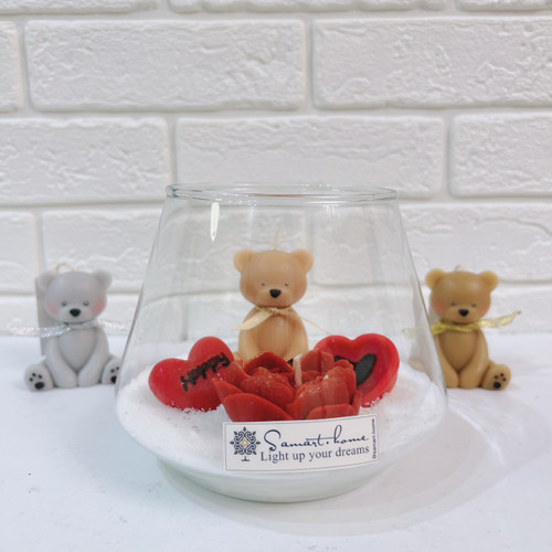 شمع معطر و دستساز تدی گلی قلبدار- خرید مستقیم از تولیدکننده