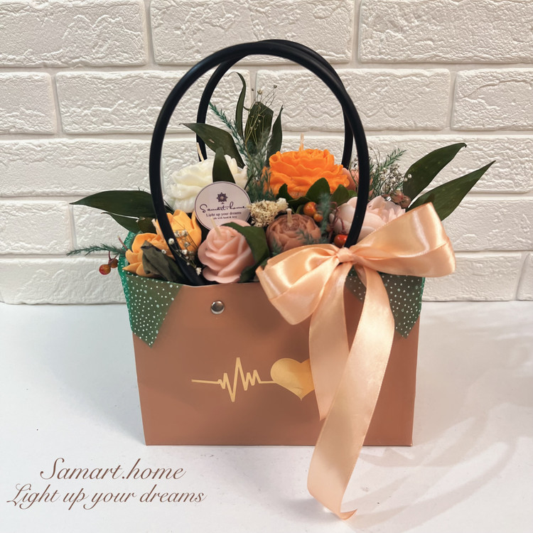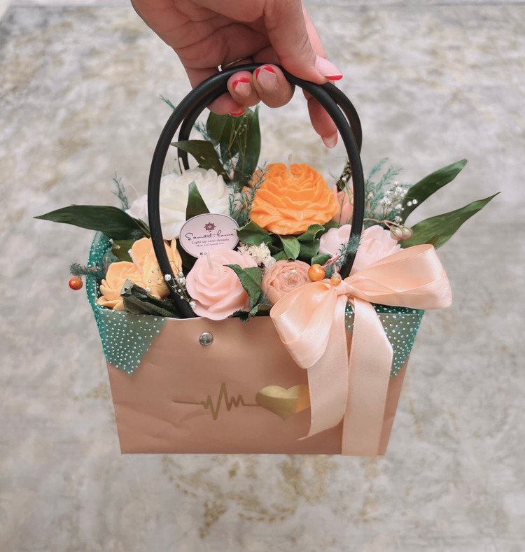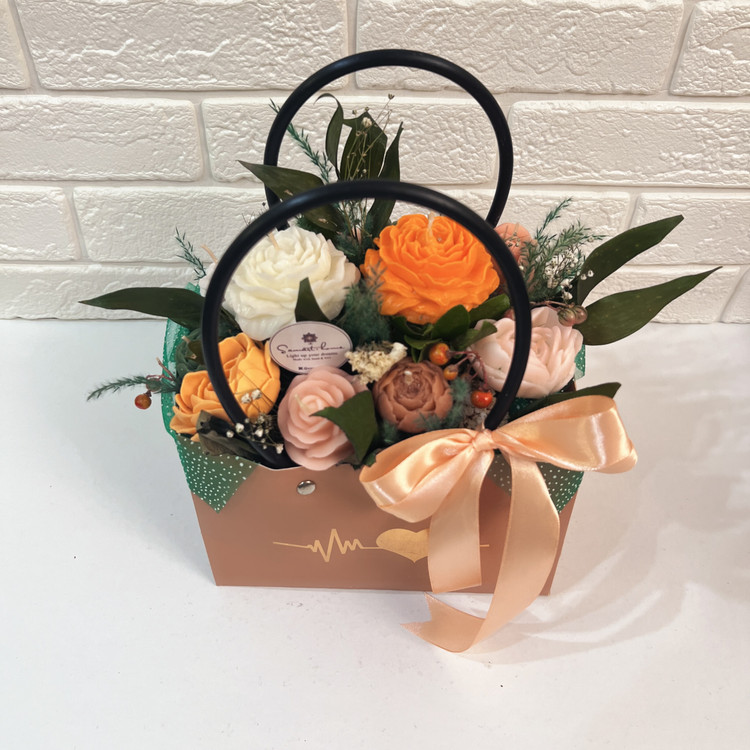 شمع معطر و دستساز باکس یا ساک گل تِم گلبهی نارنجی- خرید مستقیم از تولیدکننده