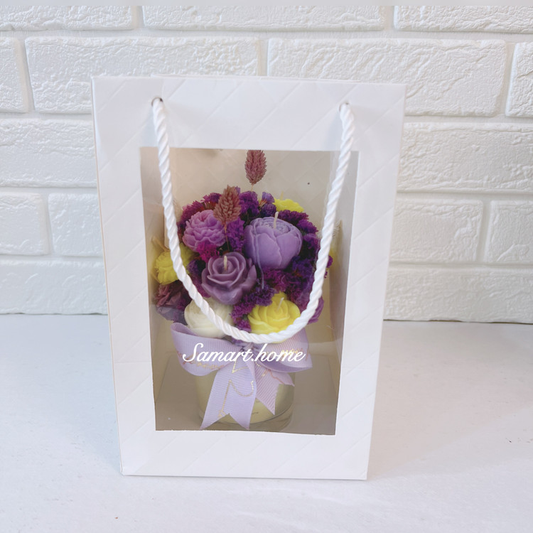 - یکی دیگر از مزیتهای این باکس اینست که داخل ظرف هم پارافین ریخته شده که پس از استفاده گلها و خارج کردن آنها میتوانید شمع لیوانی را نیز استفاده نمایید🤩