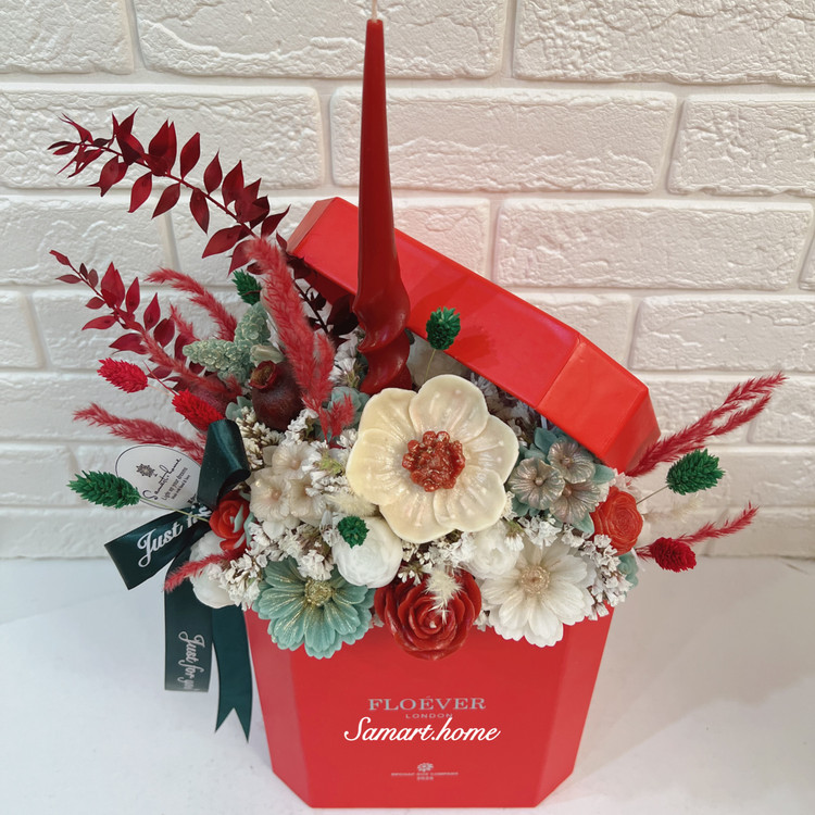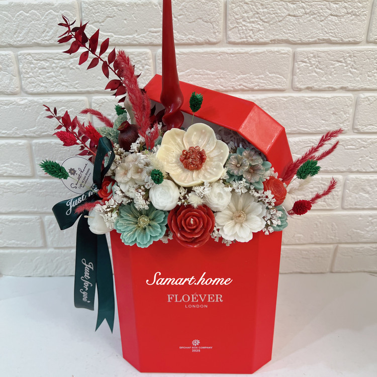 باکس شمع متشکل از گلهای متنوع از جنس پارافین و معطر