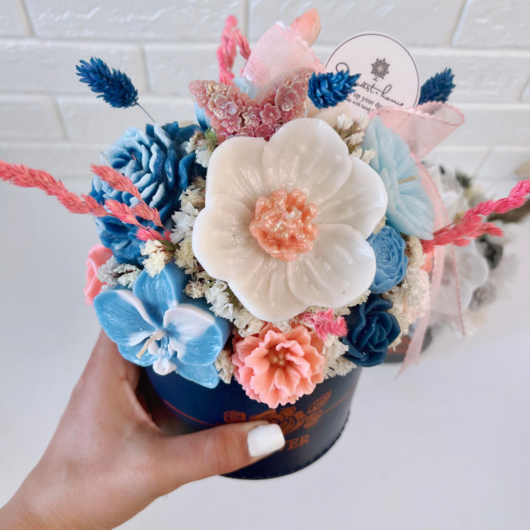باکس گل تشکیل شده از گلهای پارافین معطر و گلهای خشک