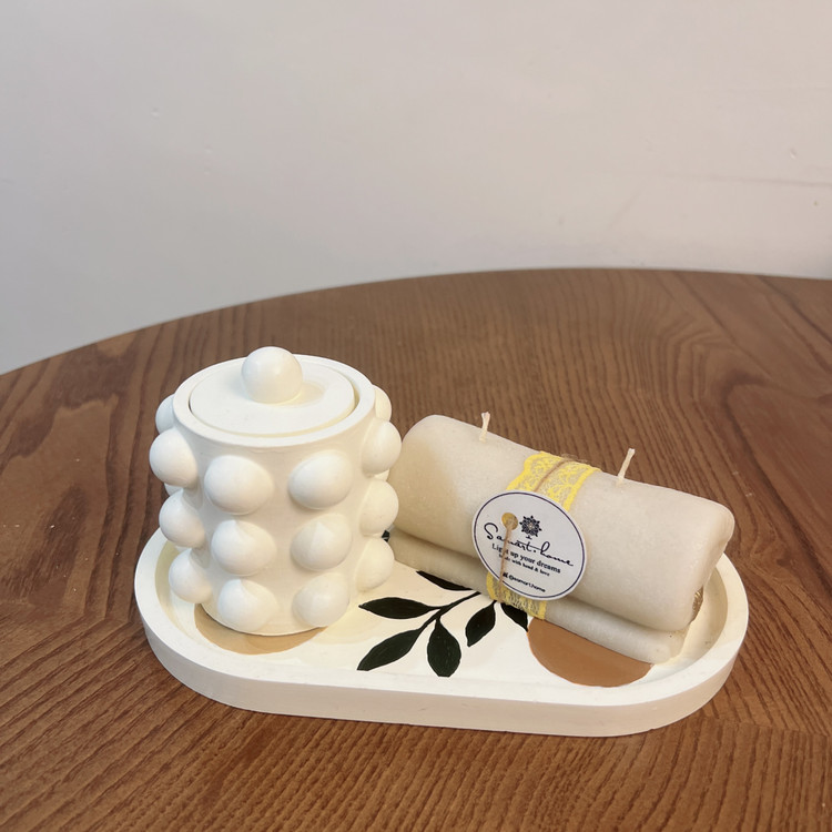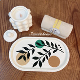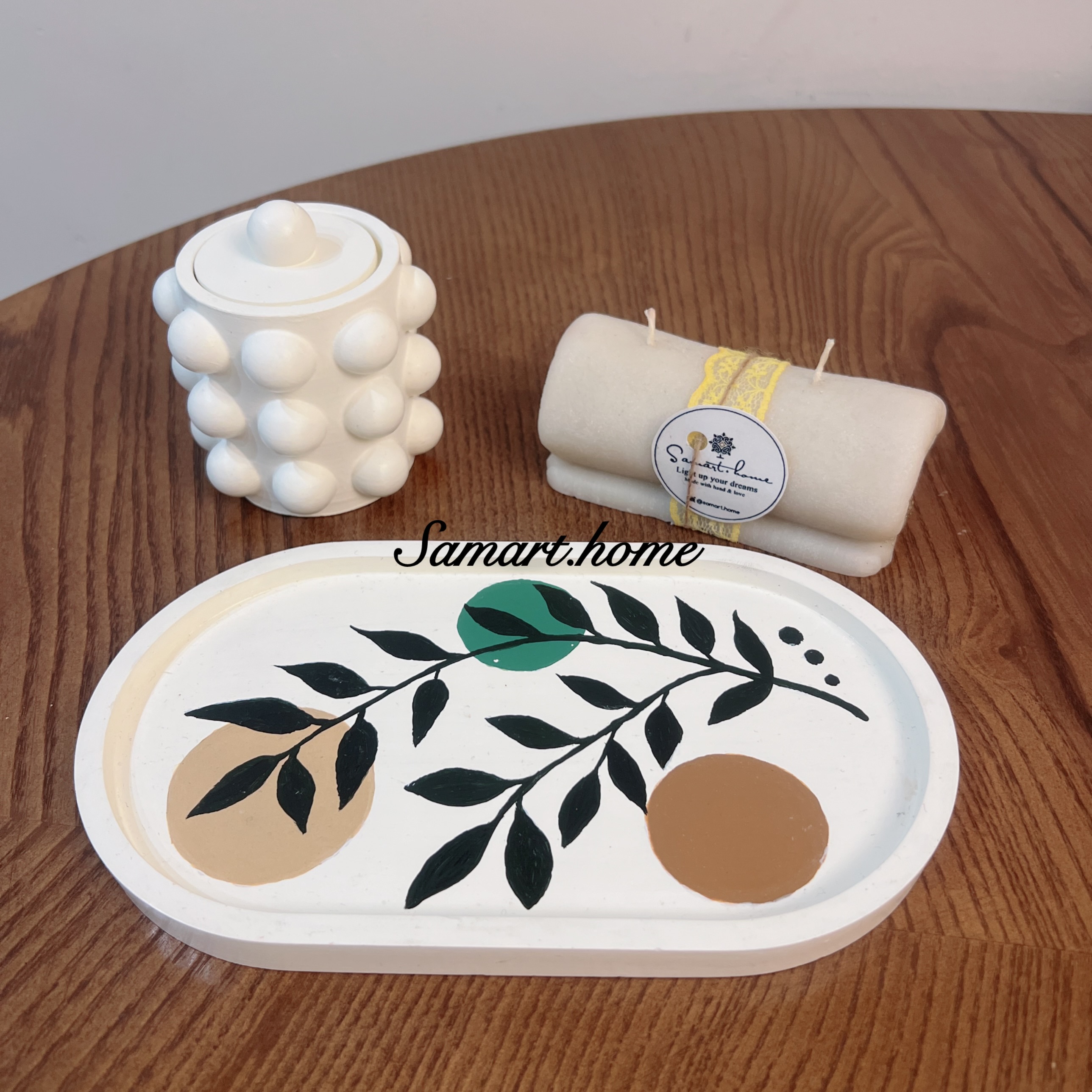 • سینی سنگ مصنوعی بیضی نقاشی شده با طول ۲۱ سانت