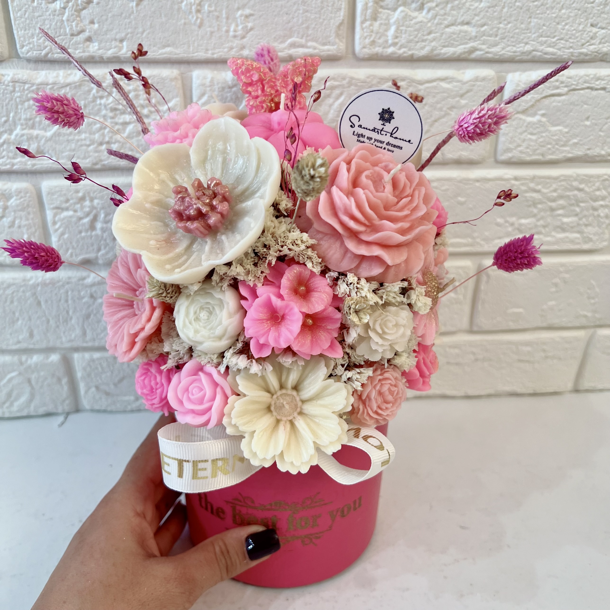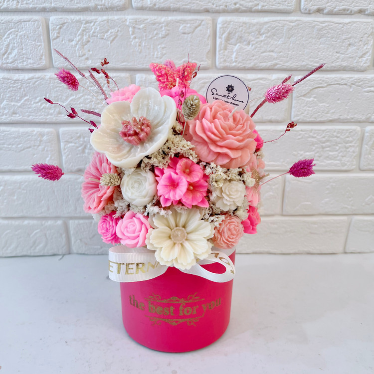 • باکس گل تشکیل شده از گلهای پارافین معطر و گلهای خشک