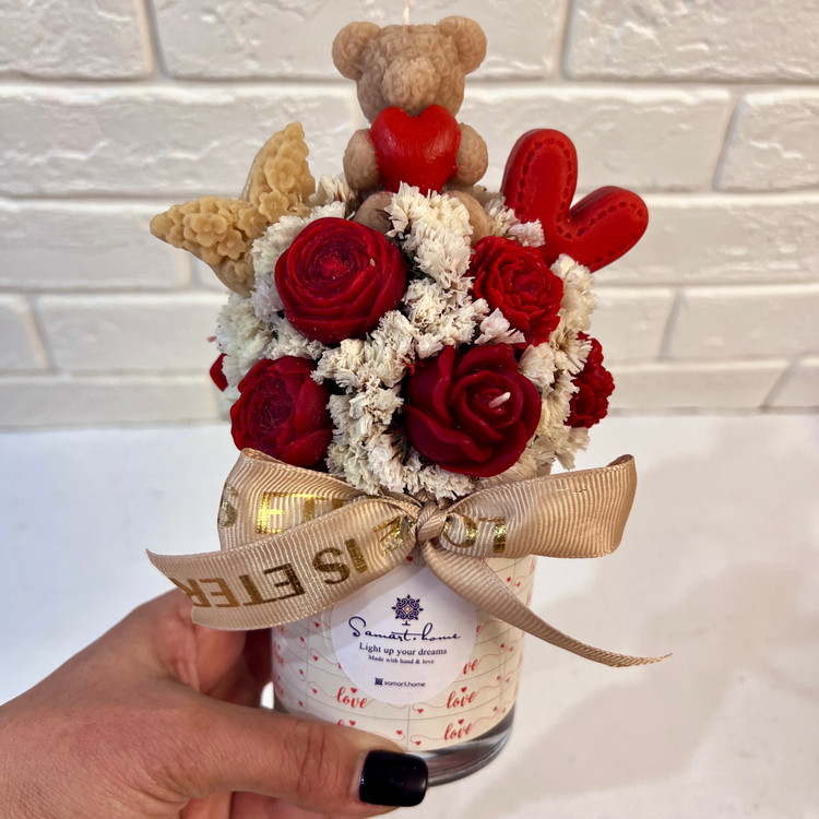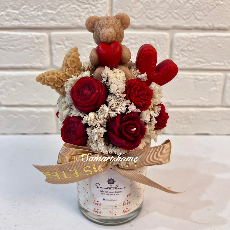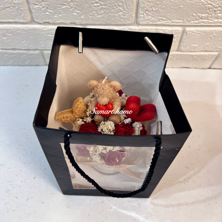 • باکس گل تشکیل شده از تدی و گلهای پارافین معطر و گلهای خشک
