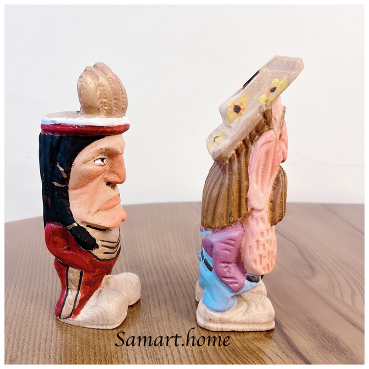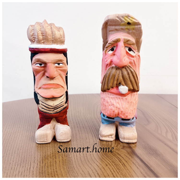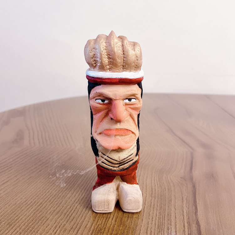 جاعودی دستساز چوب راش که مدل پیرمرد سیگاری دود از دهانش خارج میشه و مدل سرخپوست دود از بینیش خارج میشه